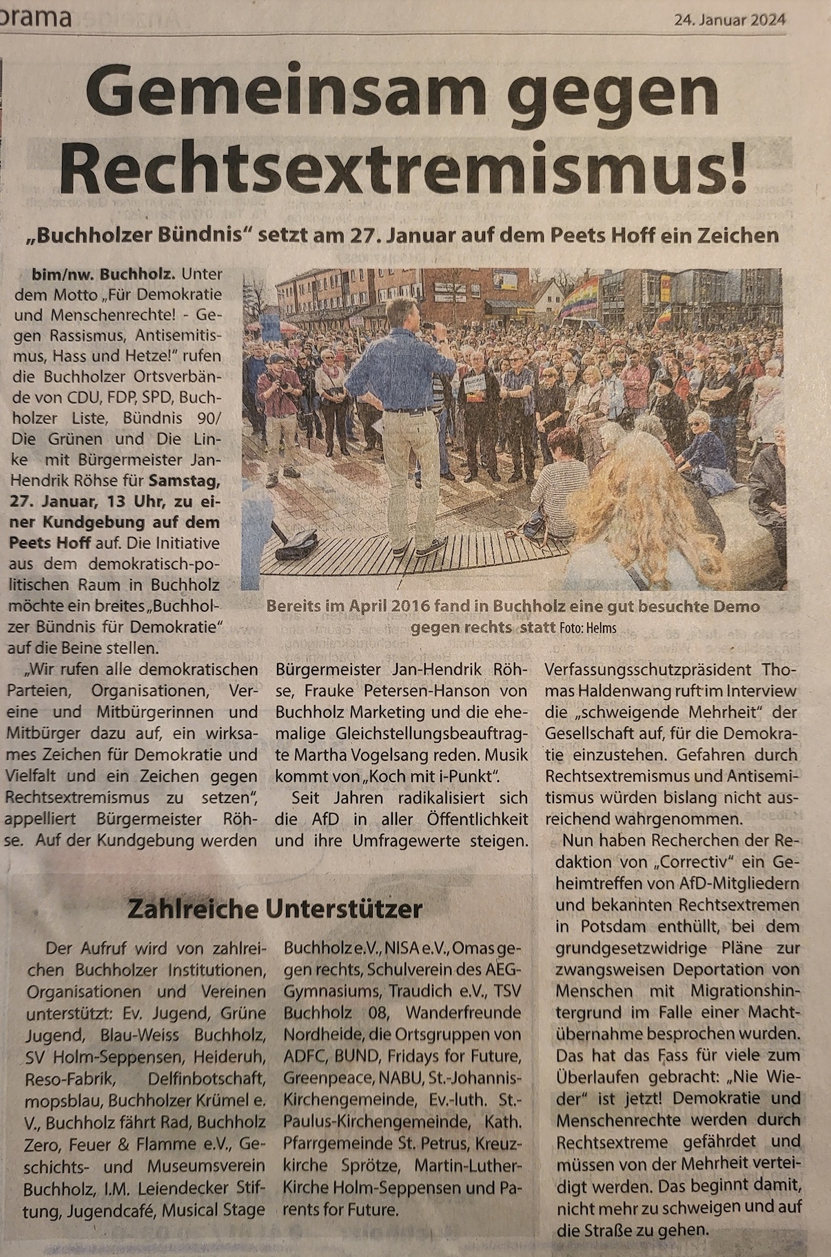 – Ankündigung für den 27. Januar 2024– Demo gegen Recht am Peets Hoff
