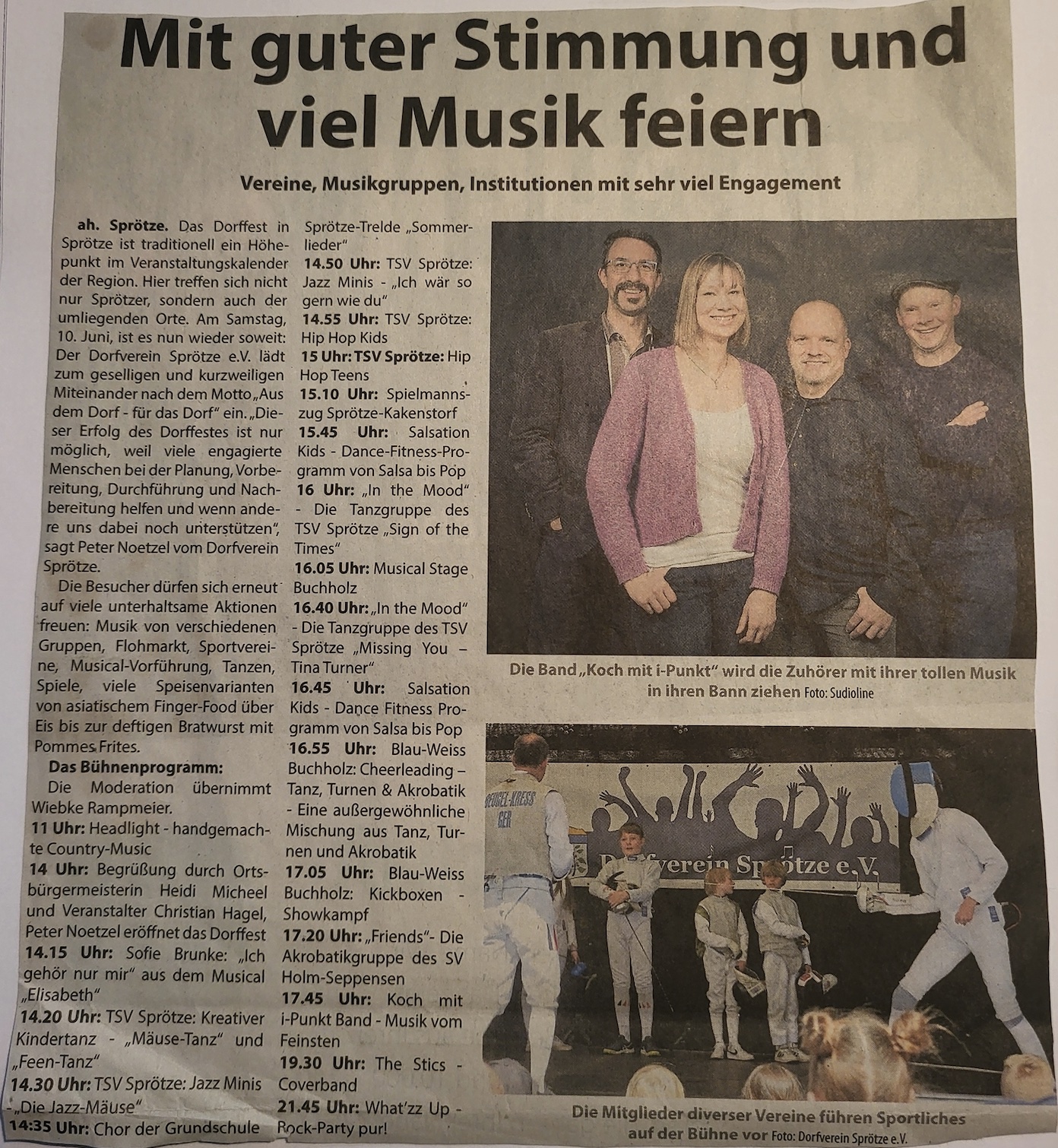 – Ankündigung für den 10. Juni 2023– Sprötzer Dorffest